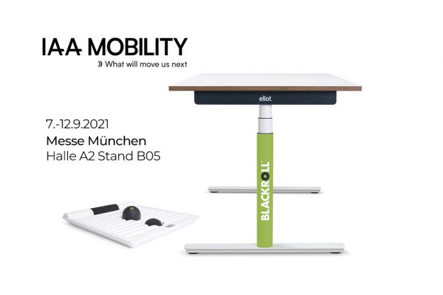 Eliot findet Ihr auf der IAA 2021 (Messe München / Halle A2.B05 ) auf dem Stand unserer Freunde von Blackroll. Aktiv Arbeiten, das ist eindeutig ein sportliches Thema! Deshalb kommt vorbei uns probiert unseren höhenverstellbaren Schreibtisch Eliot aus. Unsere Freunde von Blackroll haben das Smoove-Board entwickelt, welches super mit Eliot funktioniert (nicht nur vom Design…