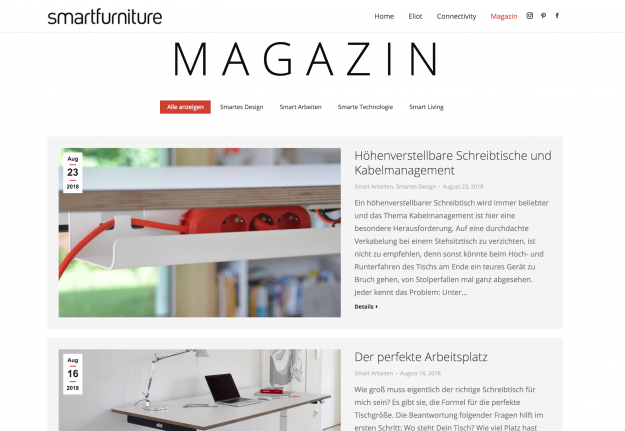 Im Smartfurniture Magazin findet Ihr interessante Artikel rund um das Thema Smart Design, Smart Arbeiten, Smarte Technologie und Smartes Leben. https://smartfurniture.de/magazin . Wir sind gespannt, uns mit Euch über aktuelle Themen, Neuigkeiten und Trends auszutauschen und freuen uns über Kommentare und Feedback von Euch. Gern auch auf unserer Facebook Seite, auf der wir die Inhalte auch…