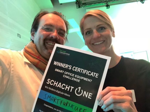 Erster Platz für Smartfurniture bei der „Smart Office Equipment Challenge“ von Schacht One im Rahmen der Beyond Conventions im Quartier bei ThyssenKrupp. Wir konnten die Certeo Business Equipment GmbH der Takkt Unternehmensgruppe als kompetenten Vertriebspartner für den E-Commerce gewinnen und freuen uns, nun mit gebündelter Kraft Eliot an den Start zu bringen!