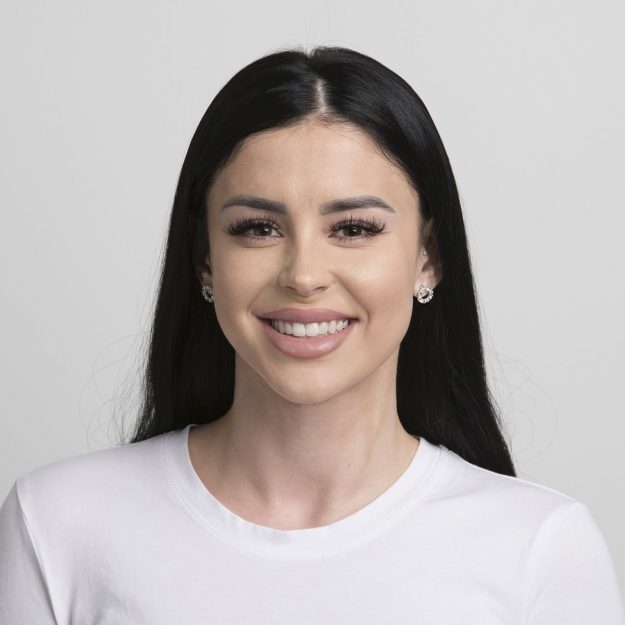 Profilbild einer Mitarbeiterin in weißem Oberteil